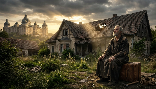 Entonces, en lugar de arreglar las goteras, abre más huecos en el techo «para ver mejor el cielo«. En lugar de limpiar el jardín, deja que la maleza lo consuma todo porque, según él, «esta casa ya no es mi hogar«. Se sienta sobre su maleta, ignorando el hambre de sus hijos y el frío de la noche, mirando fijamente hacia las nubes, esperando que un carruaje venga a sacarlo de esa miseria. Mientras tanto, el Rey observa desde su trono con profunda tristeza, porque envió los recursos, envió los planos y envió la autoridad para que su hijo reinara en esa casa; pero el hijo prefirió convertirse en un refugiado esperando una evacuación que no está en el contrato.